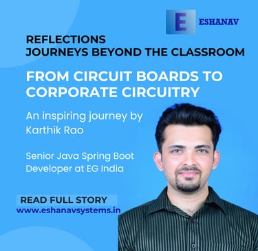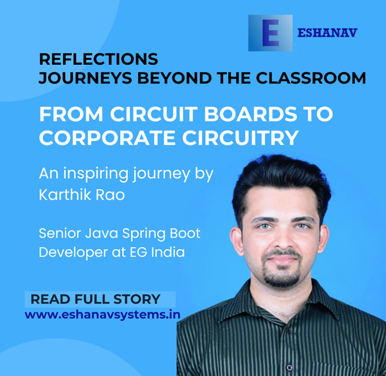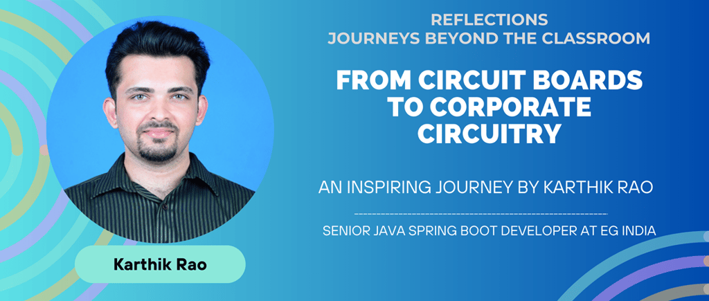 From the calm shores of Mangaluru to driving digital innovation as a Senior Java Spring Boot Developer at EG India, Karthik’s story reflects growth, grit, and groundedness. An NMAMIT alumnus (EEE, 2016), Karthik Rao is now at the forefront of modern enterprise engineering — driving innovation through microservices architecture, AI-powered integrations, and Azure Cloud solutions.
