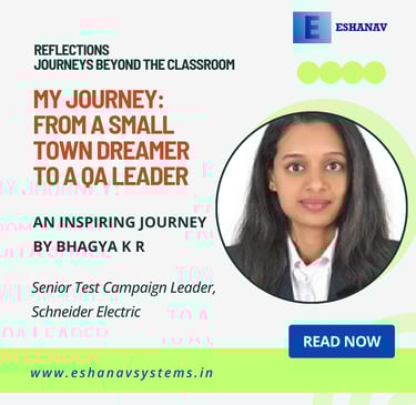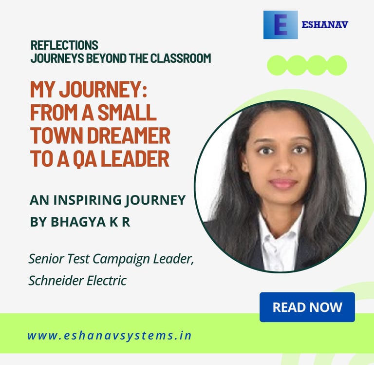 Delighted to share an insightful article written by Bhagya K R, Senior Test Campaign Leader at Schneider Electric. In this piece, Bhagya beautifully reflects on her journey and the real-world lessons that shaped her from college to professional life. Her story is relatable, honest, and a great reminder that growth happens when we embrace challenges with curiosity and courage.